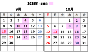 9,10月の定休日をお知らせいたします。 毎週木曜日、10日(水)、15日(敬老の日) ...続きを読む
